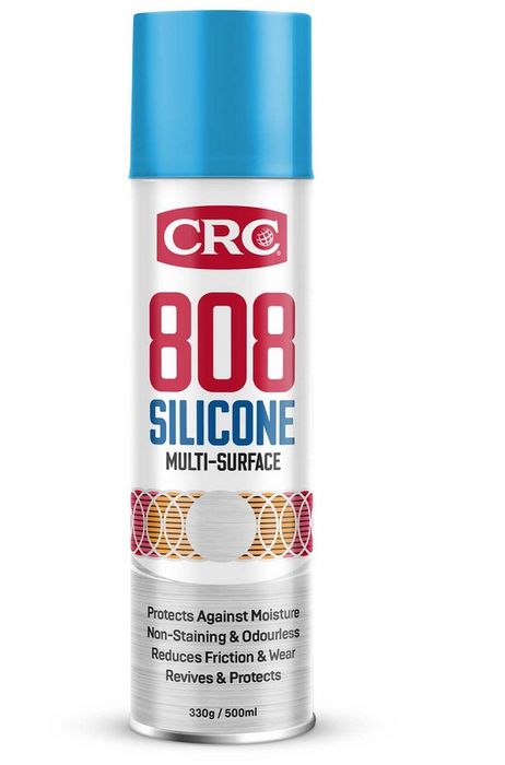 CRC 808 Silicone is a multi-purpose silicone spray for general lubrication. It leaves a thin, clear, odourless film that lubricates, waterproofs and revives without damaging treated surfaces or leaving marks or stains. It provides ongoing protection over a wide range of temperatures and pressures.