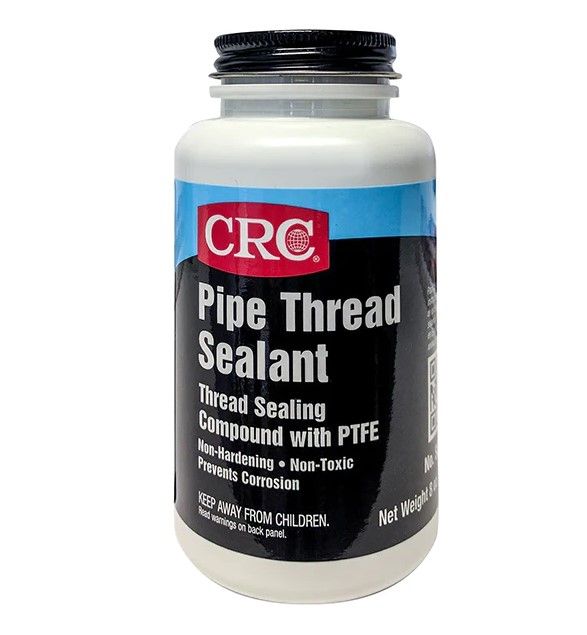 CRC Pipe Thread Sealant is a non-toxic, non-drying thread-sealing compound consisting of a blend of non-melting grease, PTFE particles and other inert solid fillers engineered to produce a leak-proof seal. Does not contain lead, graphite, molybdenum disulfide, or clay fillers.
