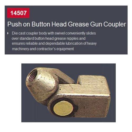 - Button Head Grease Gun Coupler push on coupler for standard button head grease nipples, includes built in swivel - Arolube