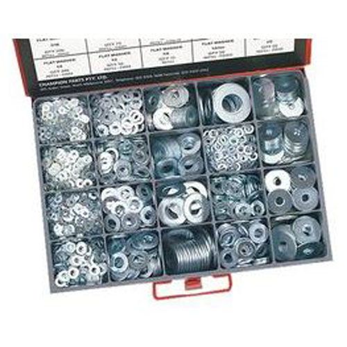 - Champion Flat & Body Steel Washer Assortment kit 1/8'' - 1'' & 6 - 12mm Inside Diameter - 2190 piece