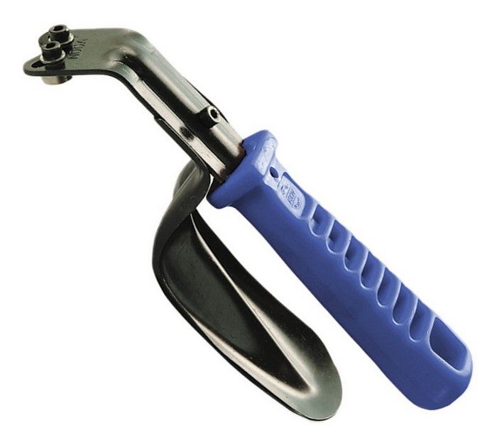 Simultaneously removes burrs from both sides of sheet metal. DB Handle with safety guard to protect your hand. Unique round cutting blades can be rotated and reversed for long life. For corners, use one blade only.