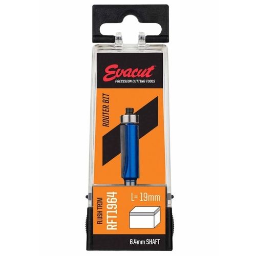 B9 - Flush Trim Panel Router Bit 19L x 25mm Straight L x 9mm Bearing Dia x 6.4mm Shank -- Evacut