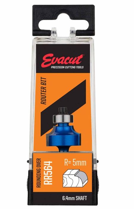 - R5 Rounding Over Router Bit 5mm Radius x 11mm Cutter Height x 6.4mm Shank - Evacut