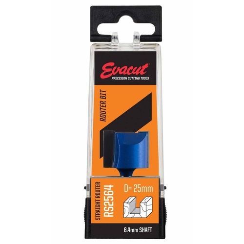 - Straight Router Bit 2 Flute , 25 mm Diameter x 19mm Flute length x 6.4mm Shank - Evacut