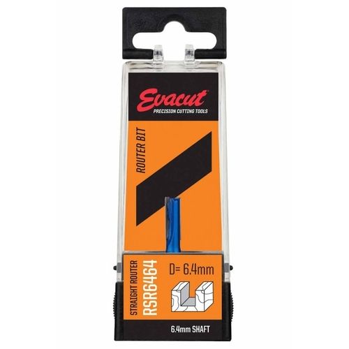 - Straight Router Bit 2 Flute 6.4 mm Diameter x 16 mm Flute length x 6.4mm Shank - Evacut
