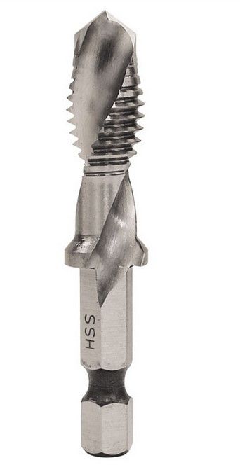 Drill, Tap & Deburr ferrous & non-ferrous metals & plastics in one operation up to 8.0mm thick. Quickly & easily produce clean, accurate threaded holes. • Fullyground M2 HSS raw material for extended life • 118 degree split point cuts faster end reduces wandering • Working thickness: 8.0mm • Shank: 1/4" quick change • Suits: Cordless drills & impact drivers • Recommended RPM: 500 - 600