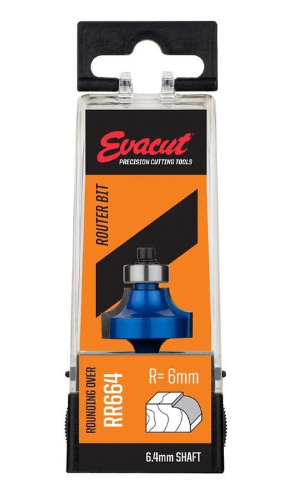 - R6 Rounding Over Router Bit 6mm Radius 6.4mm Shank - Evacut (RR664)