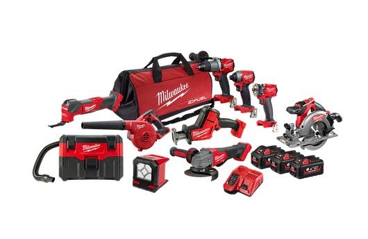 M18 FUEL 13mm 135Nm Hammer Drill/Driver, 1/4 Impact Driver, 1/2" Impact Wrench, 125mm Grinder, Hackzall, 165mm Circ Saw, Multitool, Blower, Wet/Dry Vac, Pivoting Area Light, with 3x 6.0Ah REDLITHIUM Battery, 12V/18V Dual