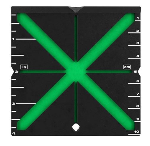The Laser Target provides fast and visible alignment feedback when setting lasers with a point on the floor or checking an offset. The X design provides responsive centering feedback that guides your line to the center, making the alignment process faster, while the high visibility illumination makes it easy to see. The Laser Target also features a wide magnetic base that is perfect for floor use or magnetically attaching to ferrous surfaces. The Laser Target is compatible with all MILWAUKEE® lasers.