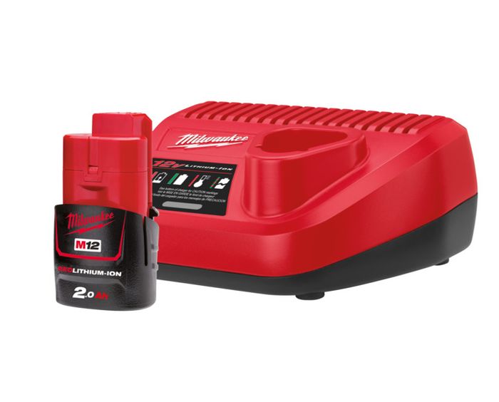 - M12 RED LITHIUM 2.0Ah Starter Pack, 1x battery and charger