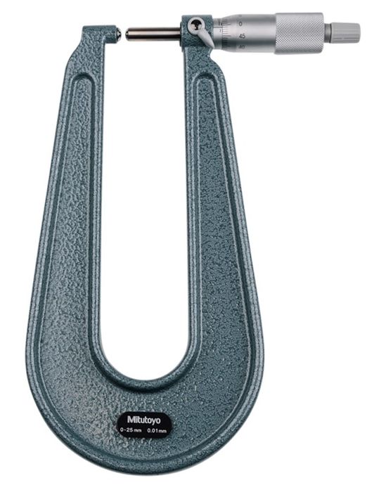 - Mitutoyo Sheetmetal Micrometer 0-25mm x 0.01mm x 150mm Throat Depth (Spherical Anvils)