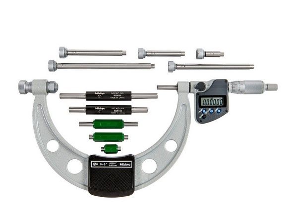 - Mitutoyo Digimatic Outside Micrometer Set 0-6"/150mm Interchangeable Anvil Type IP65 Coolant Proof