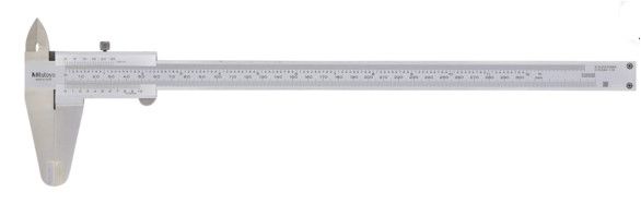 A Mitutoyo dual-scale, high accuracy/resolution vernier caliper equipped with standard outside and inside jaws. Hardened stainless steel construction with easy-to-read, satin-chromed scales.
