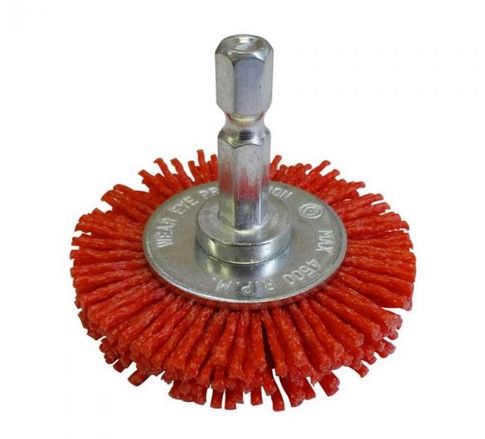- Brush Wheel 50mm 80g 6.3mm Hex Spindle Red Abrasive Nylon