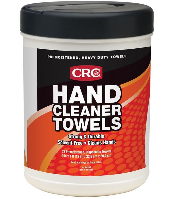 CRC Hand Cleaner Towels are textured heavy-duty towels saturated with a powerful, yet gentle citrus-based cleaner for cleaning hands away from a sink and water. The absorbent non-scratching abrasive towels quickly dissolve dirt, grease and grime and lock it into the towel and not on your hands.