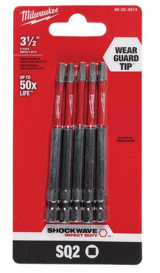 - SHOCKWAVE™ POWER BIT SQUARE RECESS #2 89MM (3 1/2“) 5PK