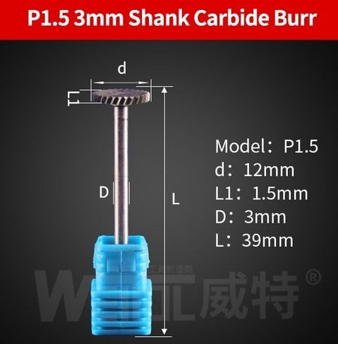 12mm Dia x 1.50mm W x 3mm Shank x 39mm OAL Carbide Rim