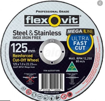 Description Steel and stainless cut-off wheels specifically designed for the trade industry. - Premium, sharp aluminium oxide grain - High performance bond system - Long life - Ultra fast cut - Free of iron - 125mm x 1mm