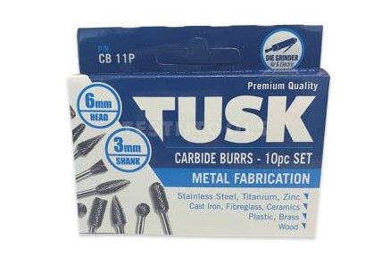 10 Piece 6mm Head 3mm Shank Carbide Burr Set - Tusk