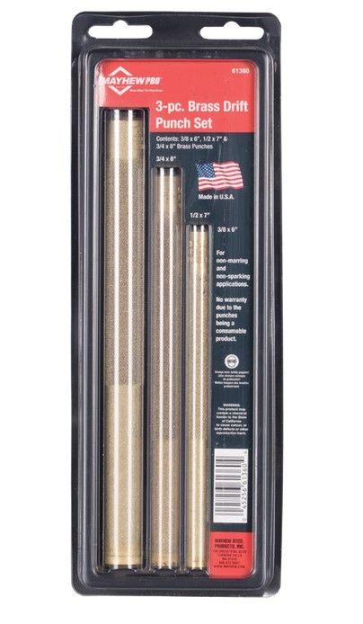 - 3 Pce Knurl Brass Drift Punch Set 3/8", 1/2", 3/4" - Mayhew
