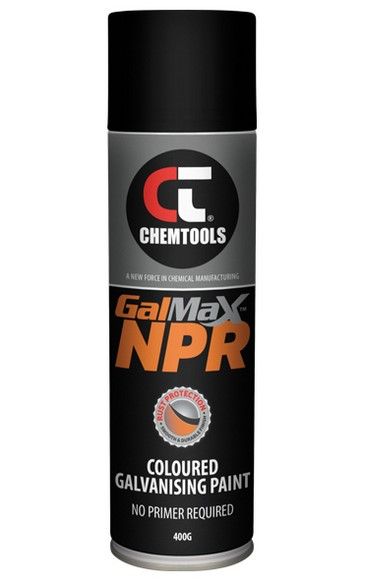 GalMax™ NPR Black Galvanising Paint GalMax™ NPR (No Primer Required) Black Galvanising Paint provides direct to metal corrosion protection, with or without primer, and dries to a smooth and durable rust fighting finish. It can be used extensively in the maintenance and restoration of damaged or worn galvanised metal, and for corrosion protection of steel/iron structures or equipment. GalMax™ NPR offers excellent adhesion to most metals, and can be used on concrete and ceramics, as well as other interior and exterior surfaces. Common applications include radiators and industrial mufflers, roads and bridges, fences and pipes, metal roofs, and offshore rigs. Note: For long-term and added protection on fresh welds or in coastal environments, priming the surface with GalMax™ 90 or GalMax™ 93 Cold Galvanising Paints or Zinc Oxide Primers (Grey or Red) is recommended prior to application.