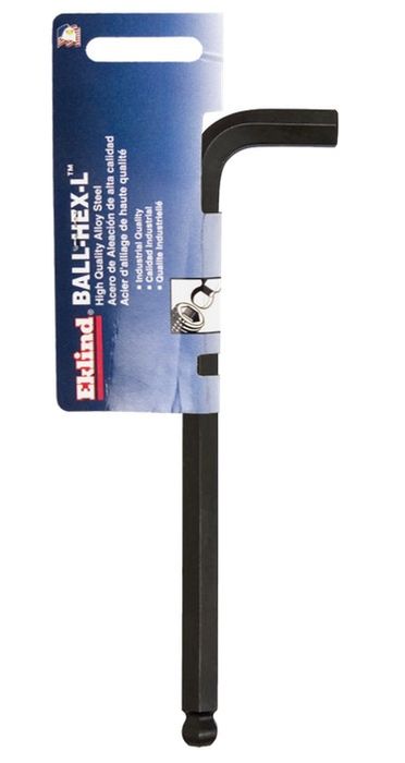 High Quality, Industrial Grade, Professional Tools. Made with Eklind Alloy Steel. Heat Treated for optimum strength and ductility. Finished with Eklind Black Finish to resist rust. Eklind Ball-Hex Keys will drive a fastener at up to a 30-degree angle. Individually Carded. Specifications: Tip Size: 2.5mm Short Arm (SA): 18mm Long Arm (LA): 88mm Outer SA (SA+): 20mm Outer LA (LA+): 91mm Individually Carded - Hang Tag