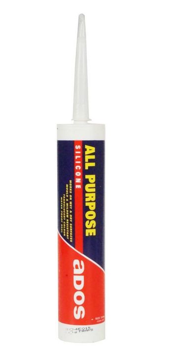 DESCRIPTION ADOS All Purpose Silicone is a single component, fast curing, room temperature vulcanising silicone. The mould and mildew resistant properties make the sealant ideal for bathroom and other plumbing applications. It is translucent in colour.It can be used on most building materials and on many damp surfaces, such as timber, cement, many plastics, roofs and guttering, window frames and glazing, masonry, ceramics etc.Available at Mitre 10 stores Applications Excellent adhesion to steel, masonry, glass, aluminium and ceramics. Used where high humidity and temperatures may be encountered. Kitchen and bathroom fixtures. Sealing showers and tubs. Curtainwall sealing. Draught proofing. Weather sealing. Plastic to metal in glazing applications. Concrete. Metal to concrete in perimeter sealing. Most plastered and painted surfaces. Galvanized or zinc coated steel. Butt or lap shear joints. Features/Benefits: A general purpose, neutral cure RTV silicone. Mould & mildew resistant. Widely used by plumbers, roofing contractors, builders, general industry and the home handyman. Translucent in colour.