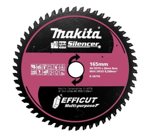 The Efficut Multi-purpose features (SMTCG) Special mod Triple chip ground, Reduced tooth face and increases efficiency of off cut removal. Blade is Laser etched back filled with resin for less noise and vibration. 1.5mm thin kerf to reduce load during cutting for longer runtime. Suitable for cutting MDF, Laminated chipboard, no-ferrous metals (such as aluminium, copper, lead, nickel, tin, titanium and zinc, and alloys such as brass.) Ideal for Cordless & 240V Circular and Mitre saws 35% More Efficient compared to (B-56823) 35% More cuts per charge compared to (B-56823) Centre/Arbor - 20mm Bush - 15.88mm