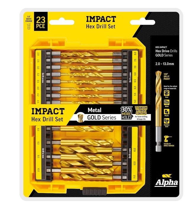 - 1 - 13mm x 0.5mm TiN Coated Hex Shank Quick Bit Set - Alpha