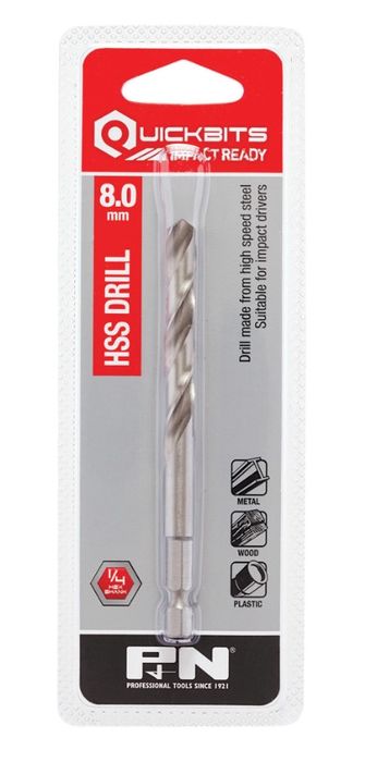 8.0mm Drill Impact Quickbit 1/4" hex Shank - P&N
