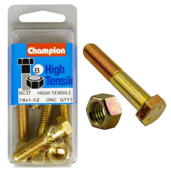 3/8'' UNC x 1-1/2'' Bolt & Hex Nut - High Tensile Packet 5