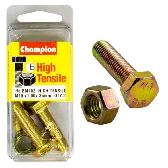 M10 x 1.0 x 35mm Bolt & Nut - High Tensile Pkt3