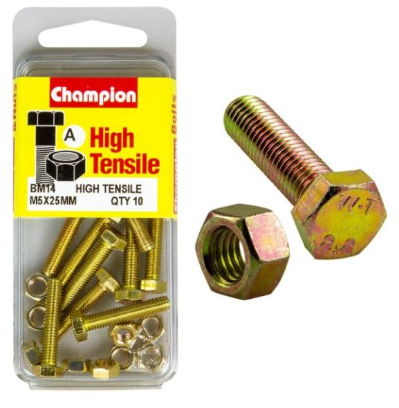 M5 x 25mm Bolt & Nut - High Tensile Pkt10