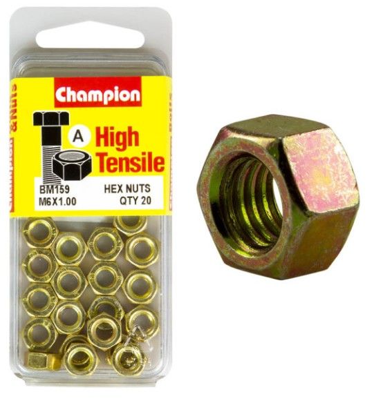 - M6 x 1.0 Hex Nut High Tensile Pkt 20- Champion