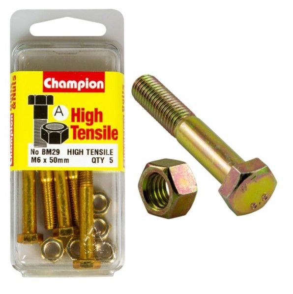 - M6 x 50mm Bolt & Nut - High Tensile Pkt5