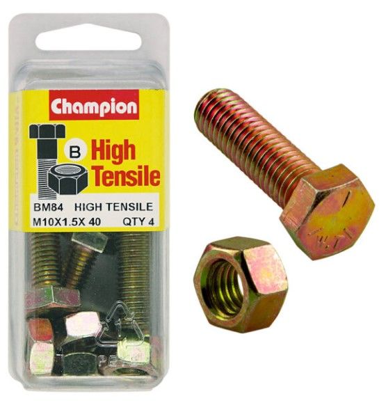 M10 x 40mm Bolt & Nut - High Tensile Pkt4