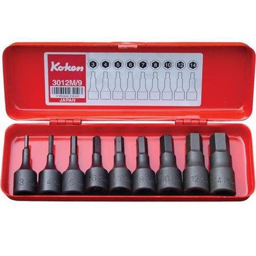 - 3-14 mm x 3/8" Hex Socket Set in Case 9 piece - Koken