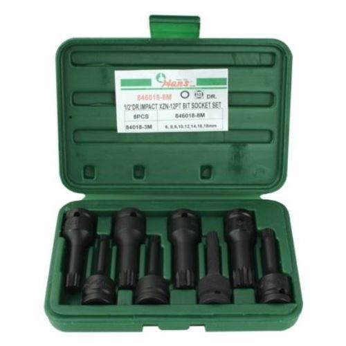 - 6mm - 18mm x 1/2" Dr XZN Impact Bit 8 pc Socket Set - Hans Tools