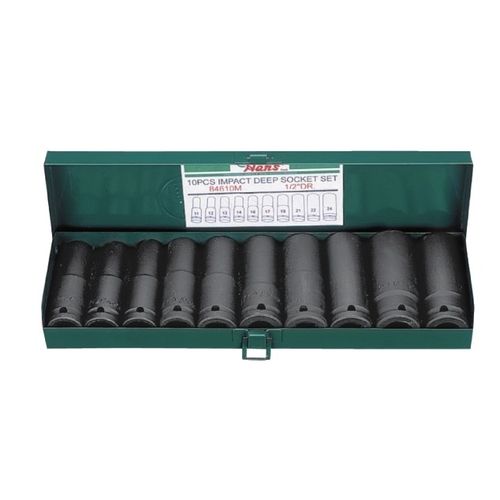 - 10- 24 mm 1/2" Drive 10 piece Deep Impact Socket Set in Metal Case - Hans