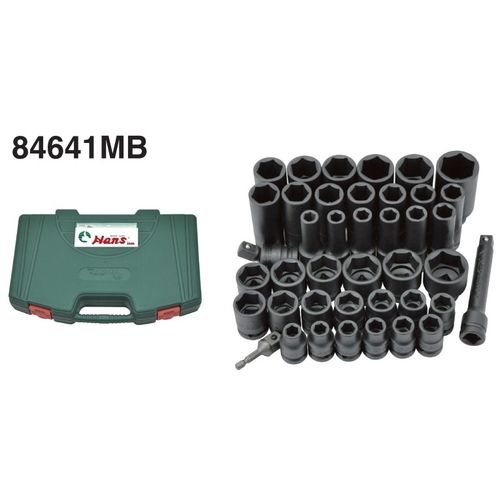 - 9mm - 30mm 1/2" Dr Std & Deep 41 piece Impact Socket Set complete with 5" Impact Extension Bar, Impact Universal Joint & Impact Socket Adaptor in ABS Case - Hans Tools