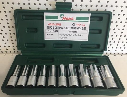 - 1/2" Dr. 10Pce 12Pt DEEP Metric Socket Set 10-24mm ABS Case - Hans