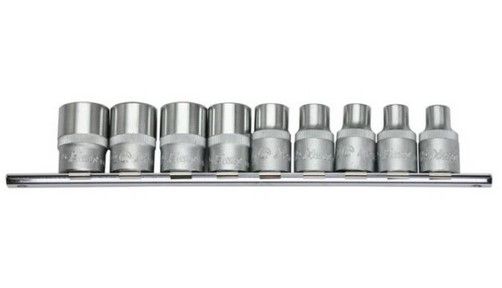 - 9pce E10-E24 1/2" Dr. E-Star Bit Socket Set on Rail - Hans