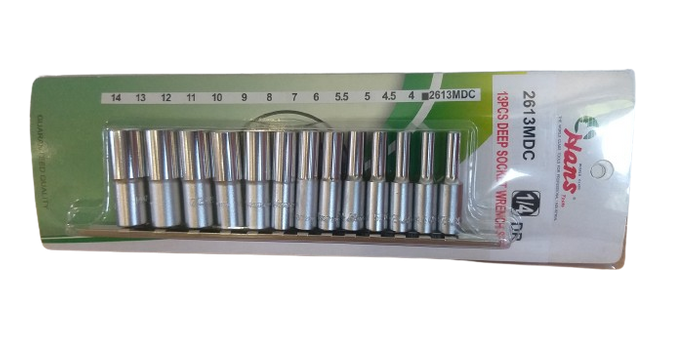 - 1/4' Dr. 13pce 6Pt Deep Socket on Rail 4-14mm