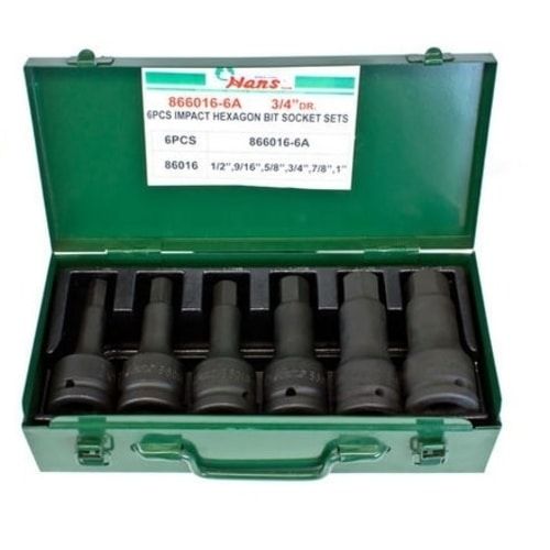 - 1/2"-1"' 6pce 3/4" Dr. Hex Bit Socket Set in Metal Case - Hans