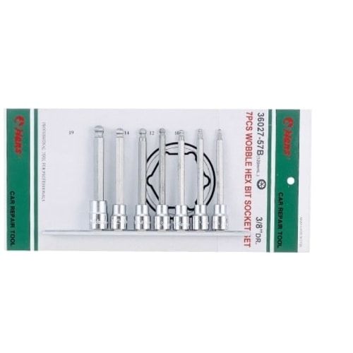 - 3-10mm 3/8" Dr. 7pce Wobble Hex Bit Skt Set on Rail - Hans