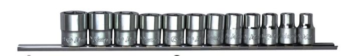 - 3/8" Dr 12 pc Socket Set on Rail 8-19mm 12Pt - Hans