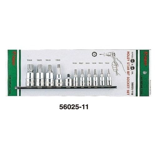 - 1/4''& 3/8'' Drive 11 piece TH10-TH60 Holey Star Bit Socket Set on Rail