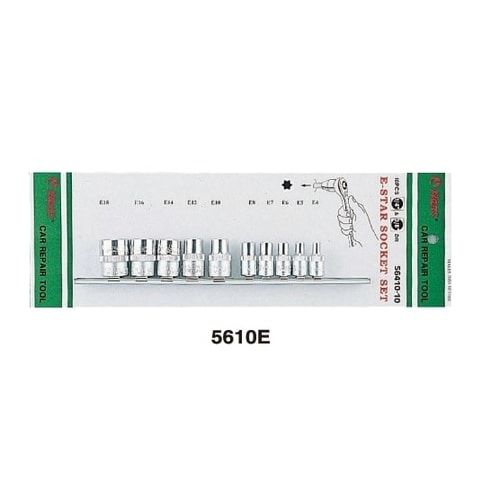 - 1/4'' & 3/8'' Drive 10 piece E4-E18 Star Socket Set on Rail - Hans