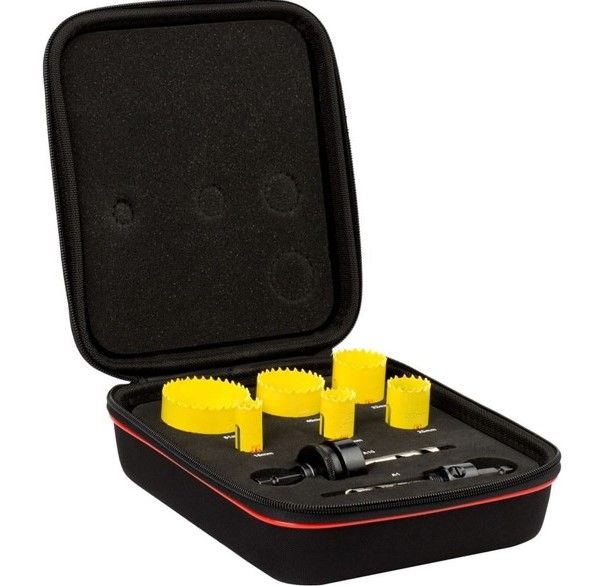 16-51mm Electrician's Holesaw Kit - Eva Case - Starrett 7 piece Contains: 16,20,25,40,51mm Hole Saws plus both large and small arbors.